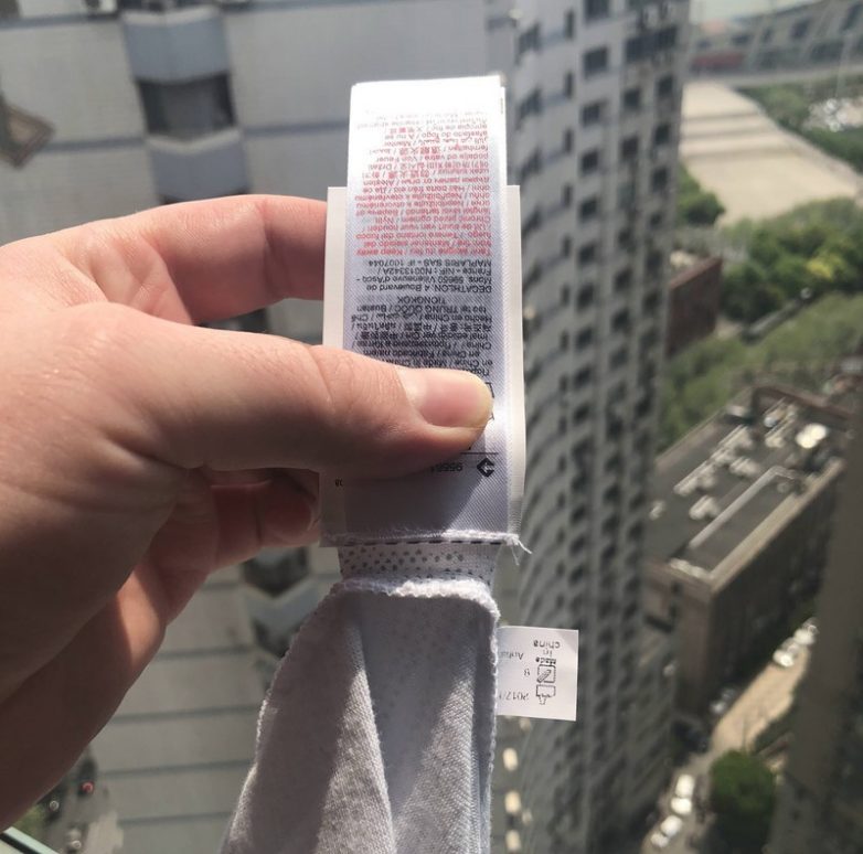 Бирка прикреплена к одежде с помощью кусочка ткани. Это сделано для того, чтобы после ее срезания остатки не раздражали кожу.