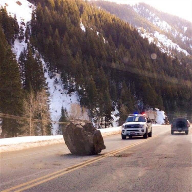 Камни падают с гор на безопасном расстоянии от везучих людей