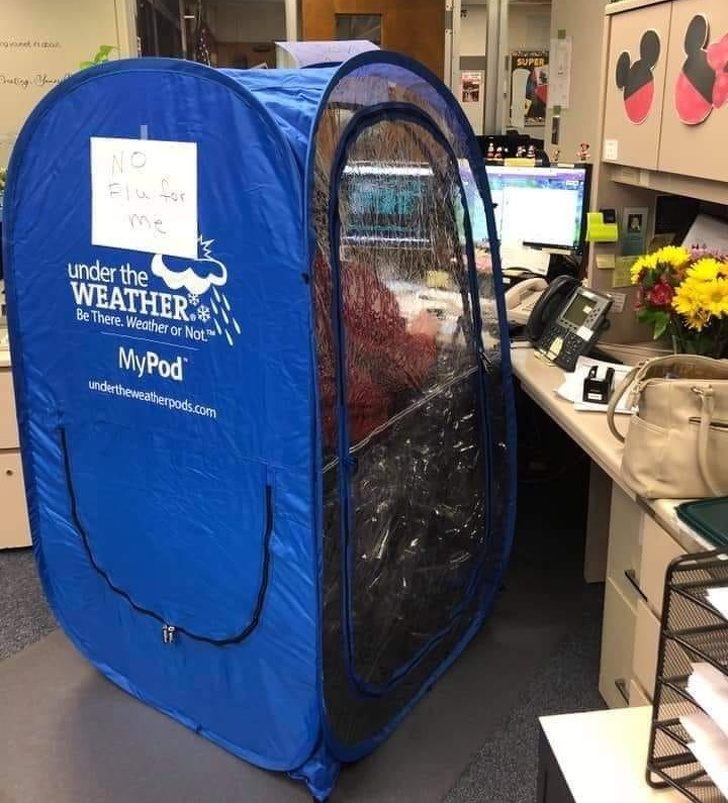 Наш коллега очень не хочет заразиться гриппом, поэтому он пошел на крайние меры
