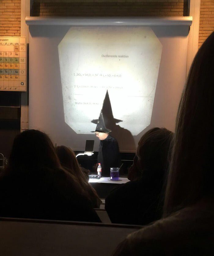 4. «Наш препод надевает шляпу и мантию каждый раз, когда проводит очередной опыт»