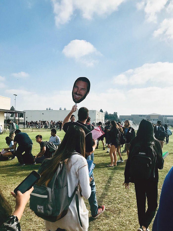 Источник: static.boredpanda.com16. Преподаватель несет табличку со своим лицом, чтобы никто из учеников не потерялся во время пожарных учений