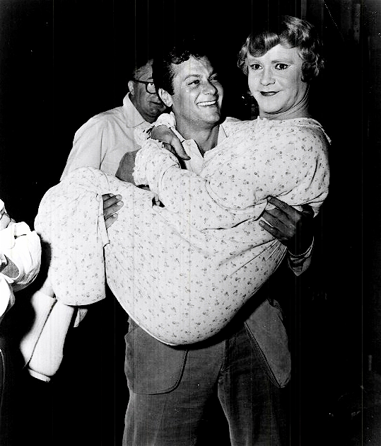 Тони Кертис держит на руках Джека Леммона во время съемок фильма «В джазе только девушки» (Some Like It Hot), Калифорния, 1958 год.