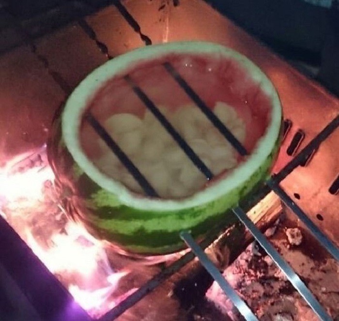 Сварить пельмешки в арбузе на мангале? Гурманы, в очередь, в очередь!