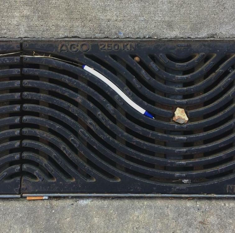 Тень от ограждения, идеально совпадающая с разметкой на асфальте
