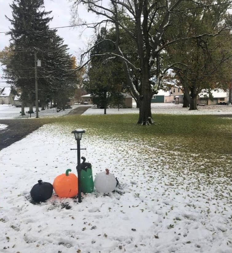Листья, опавшие на снег, выглядят как трава