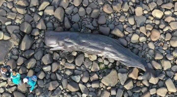 Выглядит, как игрушка на камнях, но на самом деле это настоящий кит длиной 6,7 м