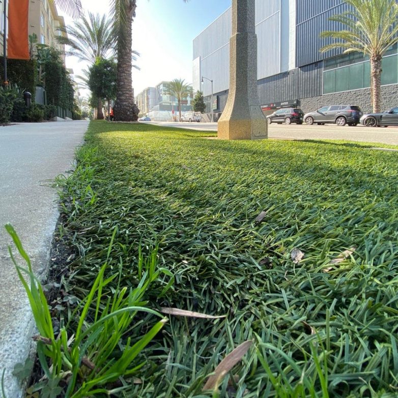 По краям искусственного газона проросла настоящая трава