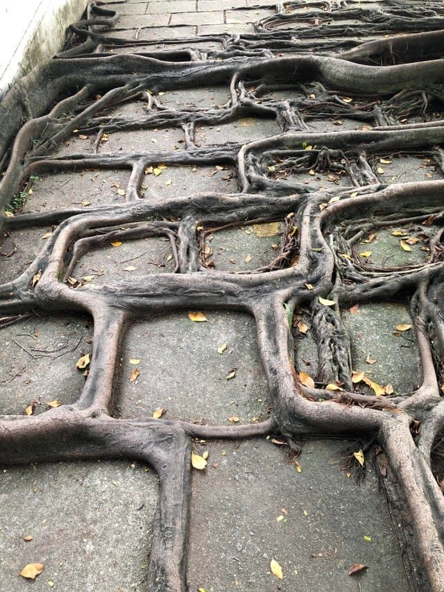 Корни повторяют рисунок тротуара