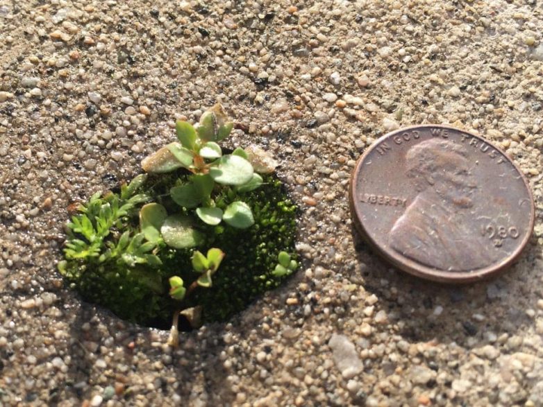 В ямке на тротуаре вырос крошечный садик