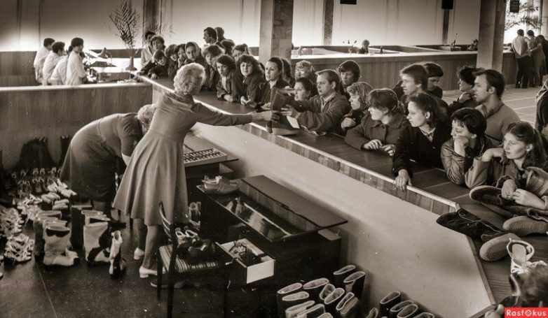 Продажа дефицитной обуви на предприятии. СССР, 1983