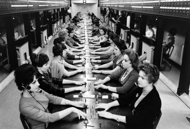 Офис телефонных операторов на Уолл–стрит, 1961 год, Нью–Йорк