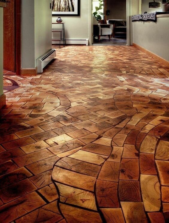 Они сделаны из брусков или спилов дерева — и это не просто какой-то там паркет, это невероятная красота, создающая ощущение, что вы ходите по лесопилке. Шутка…