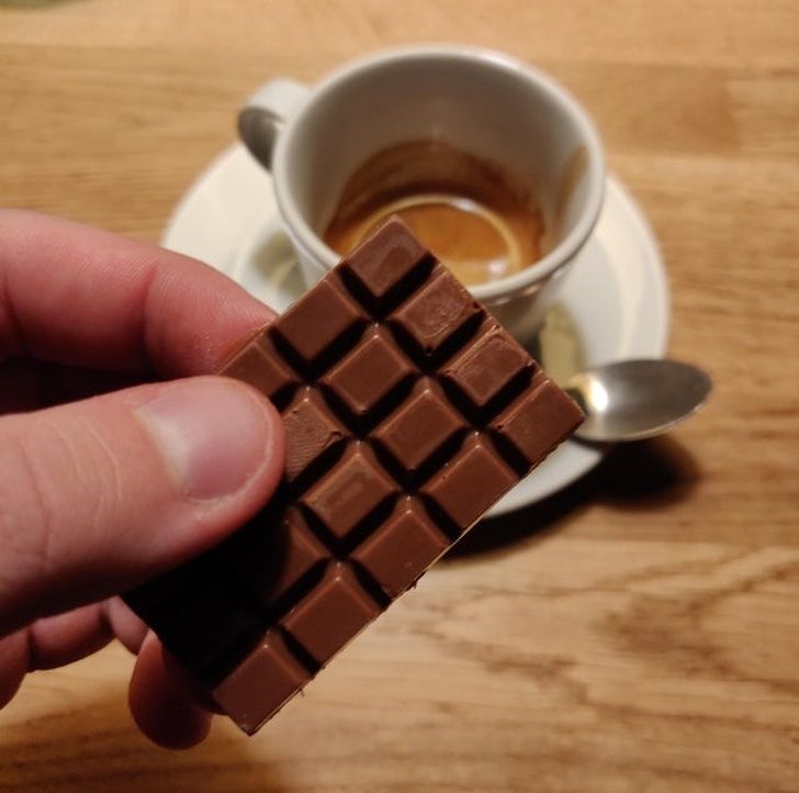 Ничего удивительно ツ — «Мелочь, но приятно.К маленькой чашечке эспрессо подают маленькую плитку шоколада».