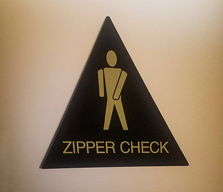 Табличка в мужском туалете, которая напоминает о том, что нужно застегнуть ширинку