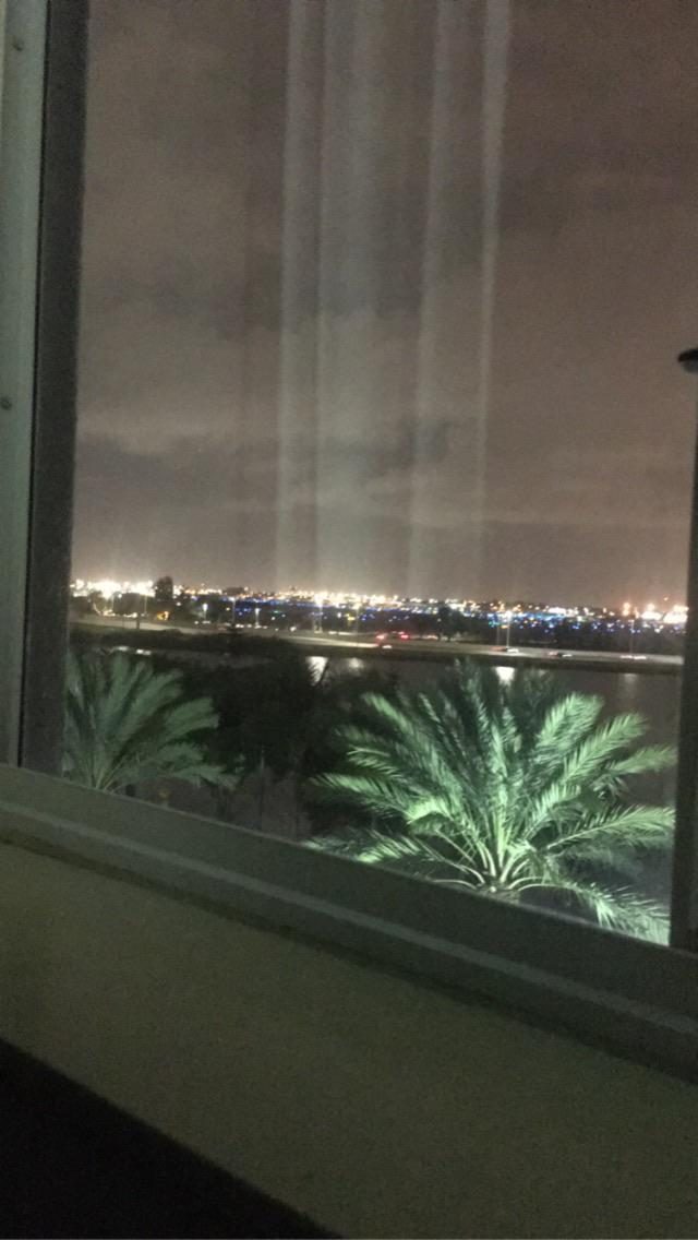 Городские прожекторы, направленные вверх? Нет, просто отражение занавески в окне