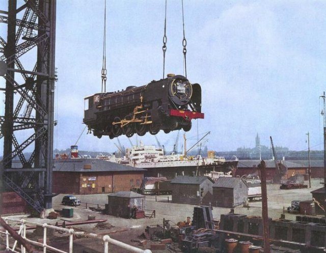Отгрузка паровоза в порту, 1952 год, Глазго