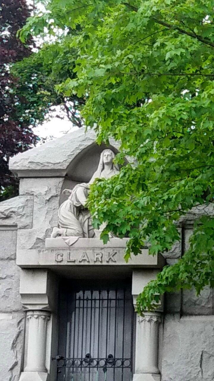 Эта статуя над входом в мавзолей, часть которой прикрыта веткой дерева