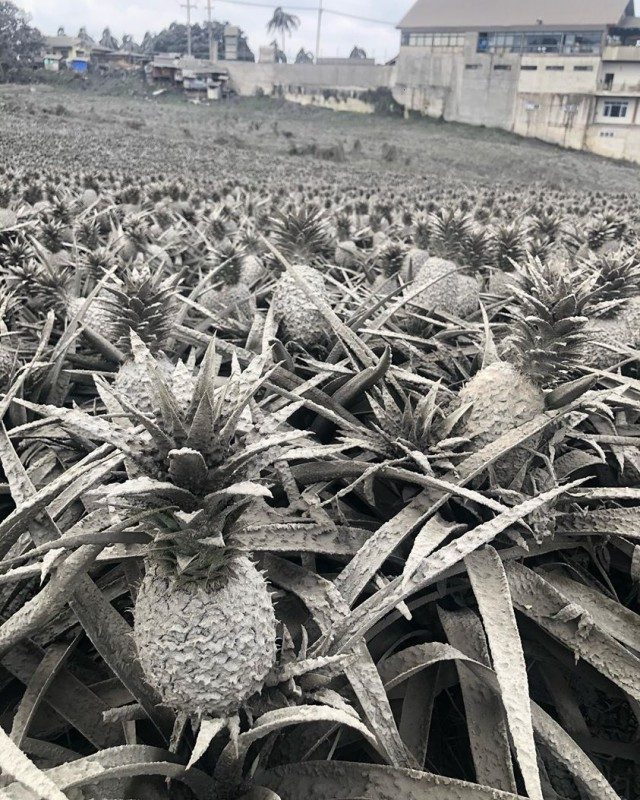 Это не черно-белая фотография, а покрытая вулканическим пеплом ананасовая плантация в городке Тагайтай на Филиппинах