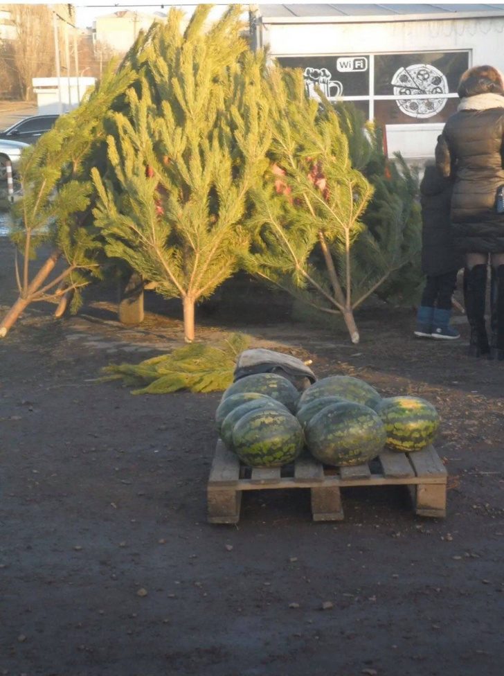 Нормальный ассортимент для конца декабря – свежие елки и арбузы