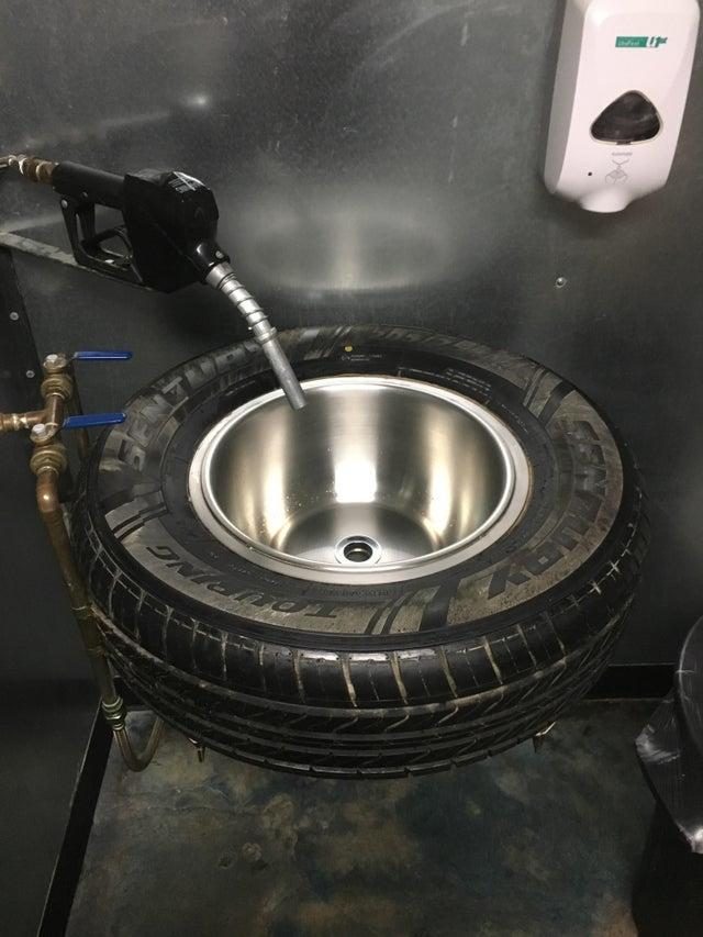 В следах от шин осталось машинное масло, сделав их похожими на витраж
