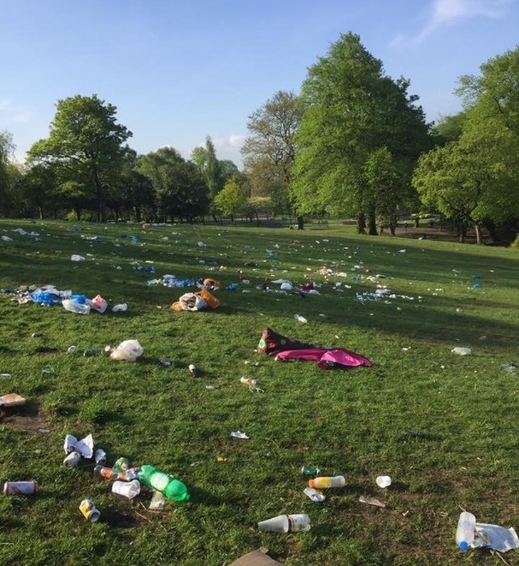 Когда не убирают мусор после пикника.