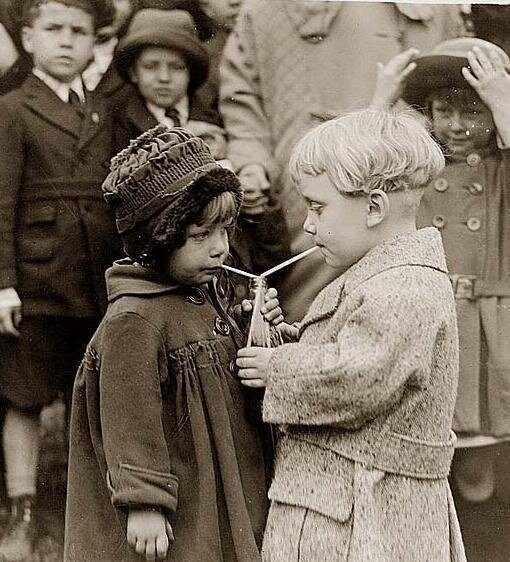 Двое детей пьют газировку возле Белого дома, Пасха 1922 года.