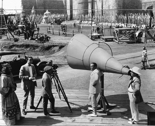Дуглас Фэрбенкс (в центре) и режиссер Аллан Дван (справа) на съемочной площадке Робин Гуда, 1922 год