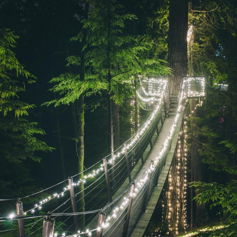 Канада, парк Капилано, огромный подвесной мост в местном лесу