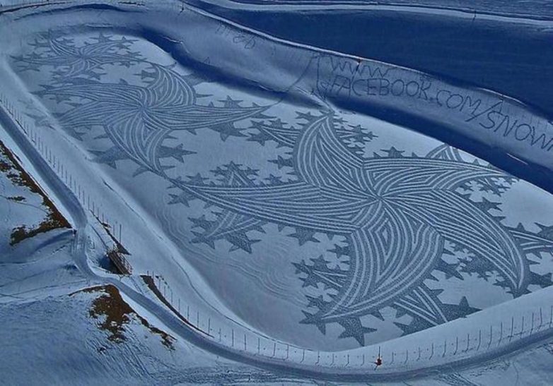 Художник Саймон Бек любит вот так порисовать на снегу, с размахом!