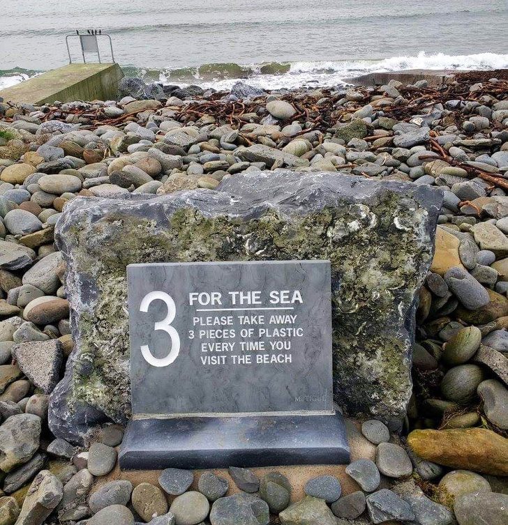 Перевод: «Плз, унесите с собой 3 пластиковых предмета, когда уйдете с пляжа»
