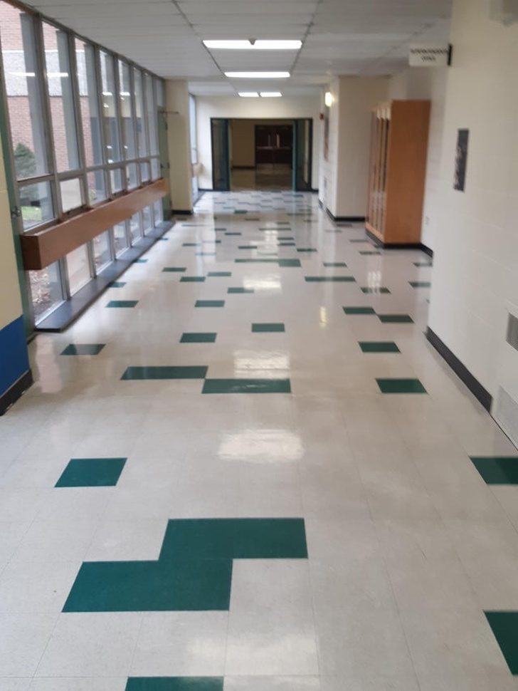 Никакого другого способа распределить черные квадратики по всему полу не было в принципе?