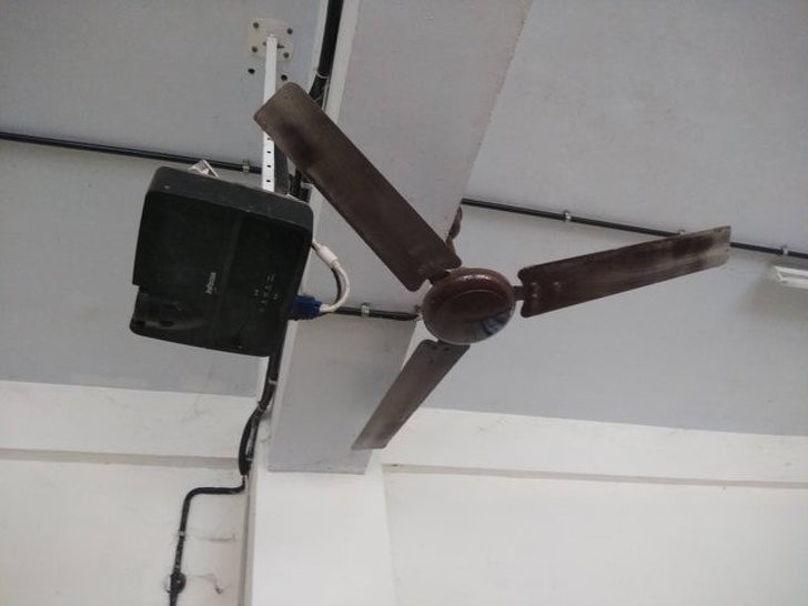 Либо вентилятор, либо проектор, вы уж выбирайте, если тямки нет, как их вместе повесить
