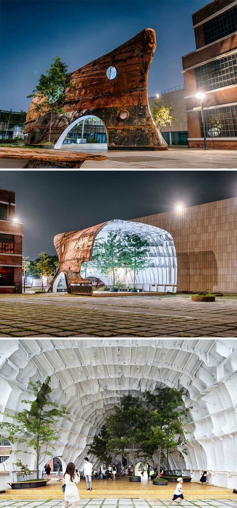 8. Старый ржавый корабль превратился в потрясающее здание с деревьями и растениями