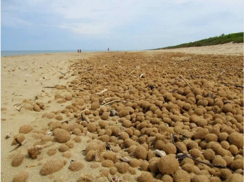 Это род морских трав посидония, образующая огромные подводные луга в Средиземном море. Периодически на берег выбрасываются шарики из листвы, которые называют egagropili.