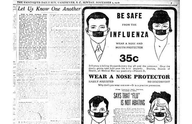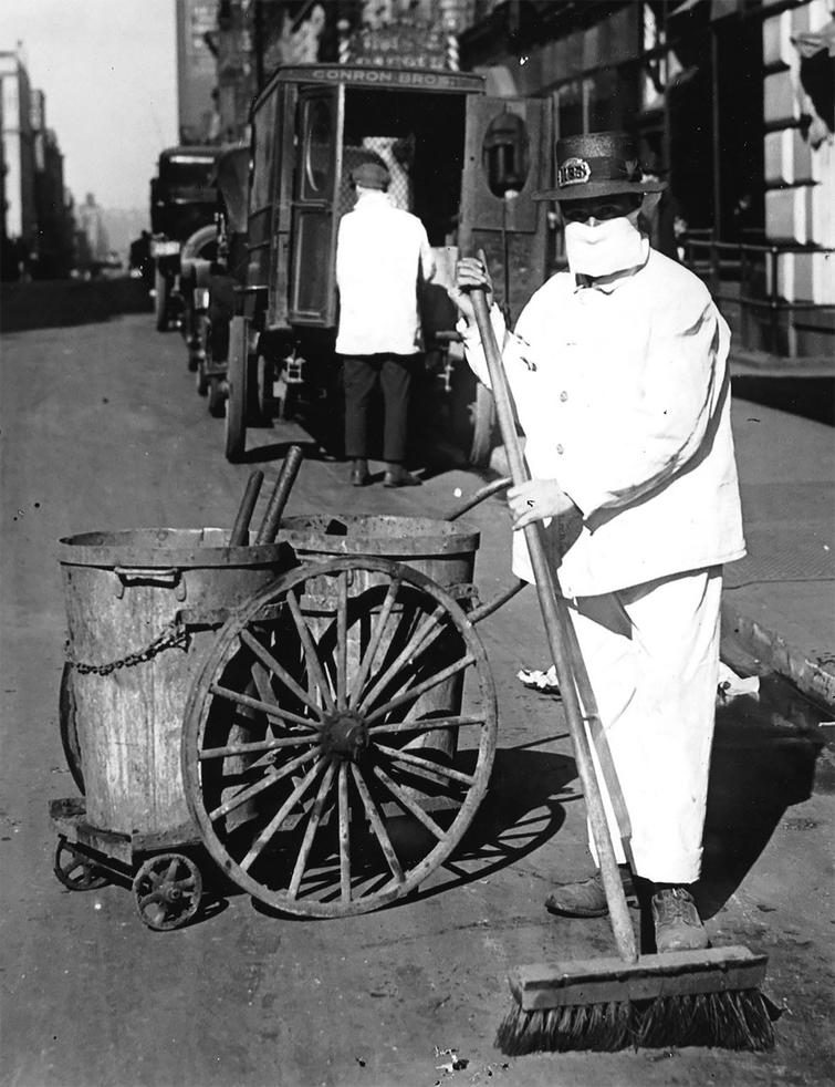 В конце Первой мировой войны приблизительно 50 млн. человек умерли от одного из самых смертоносных бедствий человечества — испанского гриппа, более известного как «испанка». В те времена не было более эффективного способа защиты от смертельной заразы, чем маска, собственно, как и сейчас.