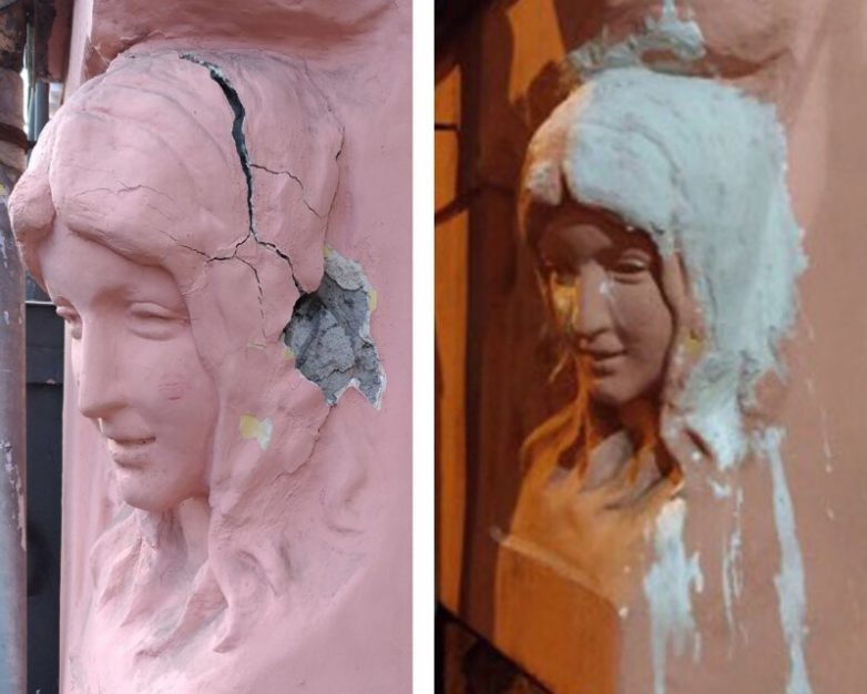 Объекты исторического наследия с годами теряют свой прежний облик, поэтому фасады нуждаются в ремонте. Однако иногда за работу берутся горе-реставраторы, которые превращают некогда красивые мозаики и барельефы в их жалкое подобие.