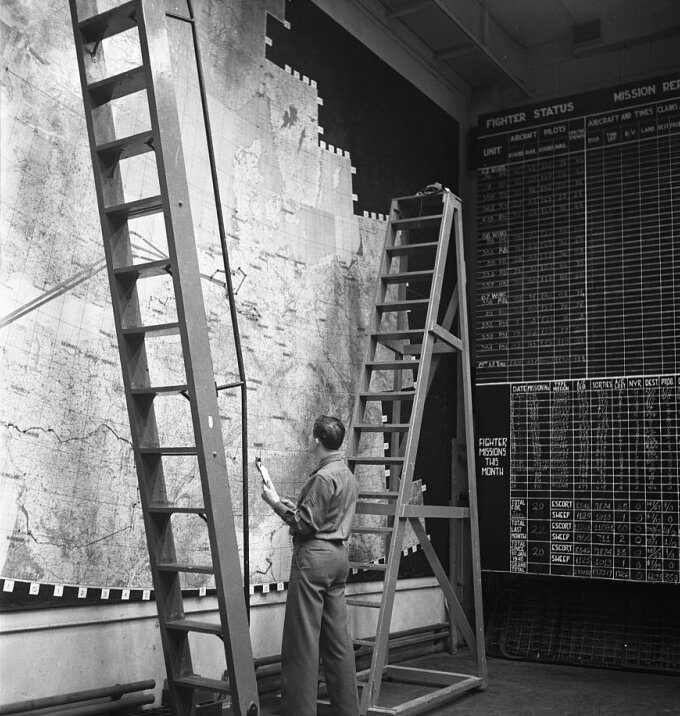 Настенная карта в штабе ВВС США. Англия. Вторая мировая.