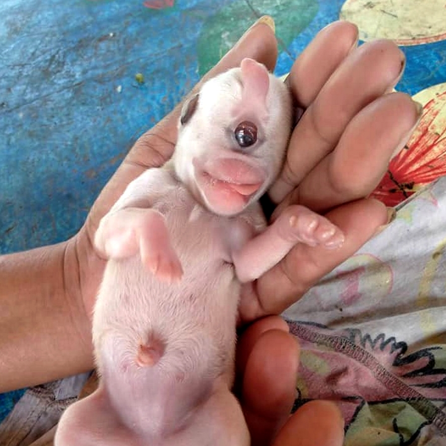 Владелец необычного животного 45-летний Сомджай Пуммаман (Somjai Phummaman), работающий государственным служащим, рассказал, что он одевался, когда случайно заметил, что его собака породы аскал родила двух щенков на полу спальни.