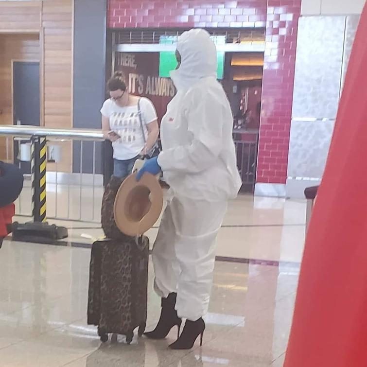 Модница в аэропорту Атланты, которая просто стоит и не заражается коронавирусом