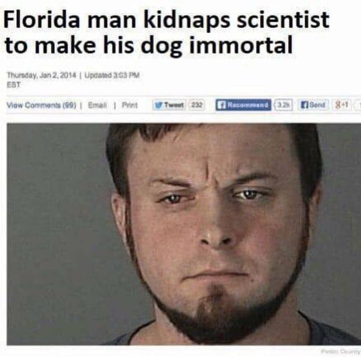 «Мужчина из Флориды похитил ученого, чтобы тот сделал его собаку бессмертной».