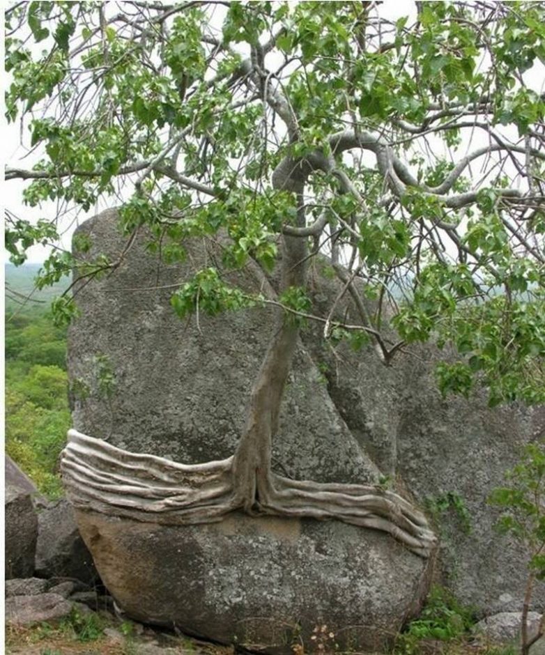 22. Дерево раскололо камень, который стал его вазой