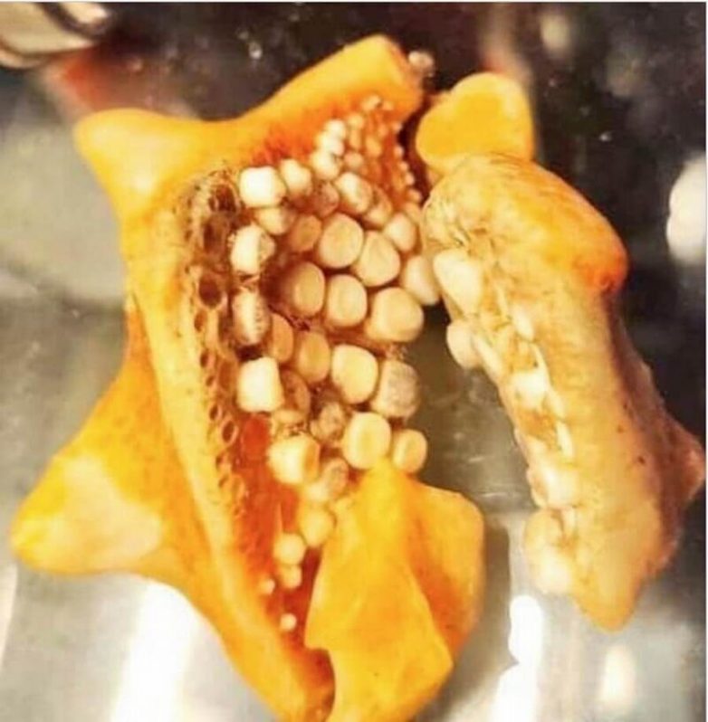 Это похоже на глоточные зубы рыбы бородатый темный горбыль.