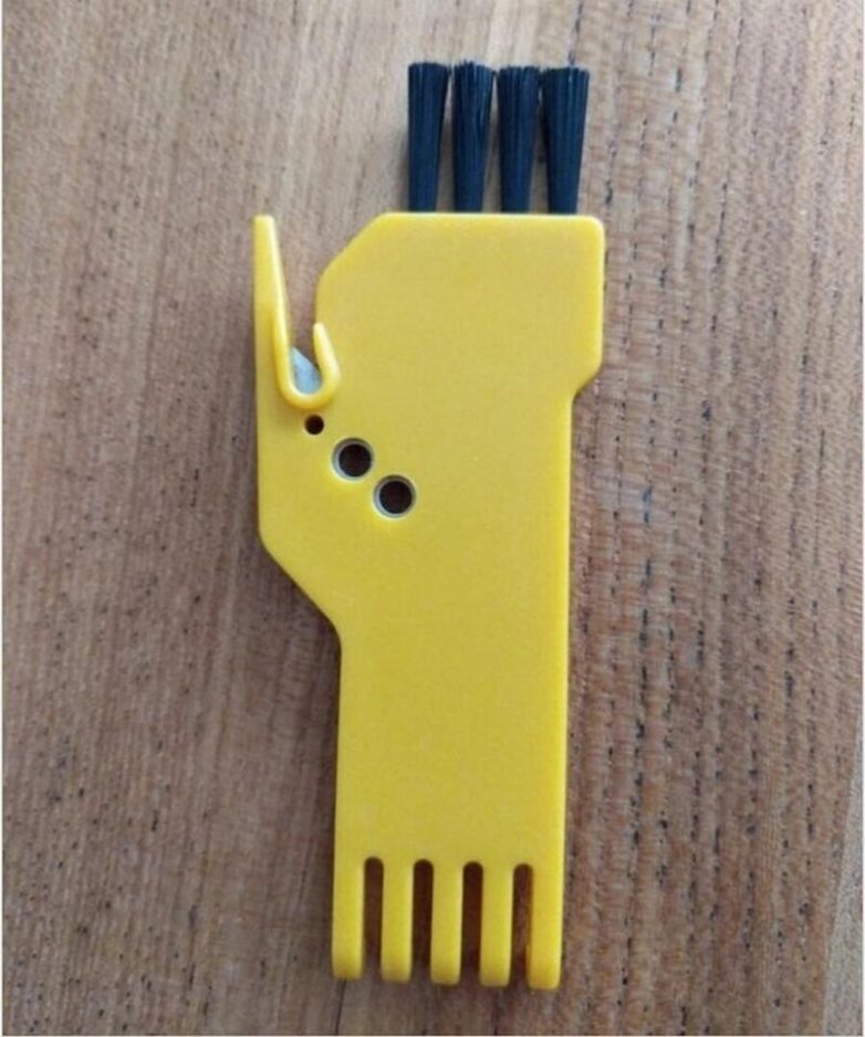 Это щеточка для чистки робота-пылесоса. Она позволяет очистить все его реснички и разрезать запутавшиеся волосы.