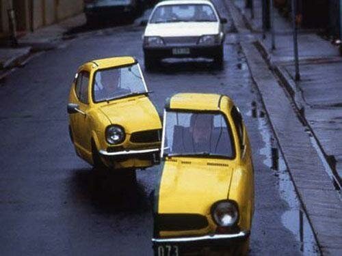 Два мотоцикла с обвесами, которые выглядят как половинки машины. Спец-техника для трюков.