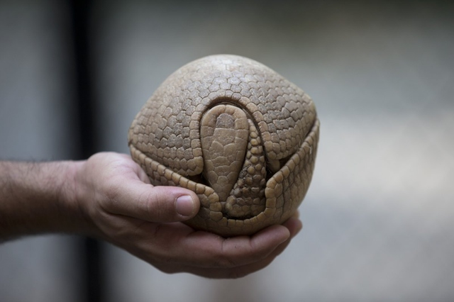 Броненосец свернулся клубочком для защиты о хищников. В таком положении он практически неуязвим.