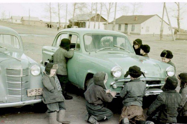 Дети рассматривают автомобиль Москвич–402, 1957 год, СССР