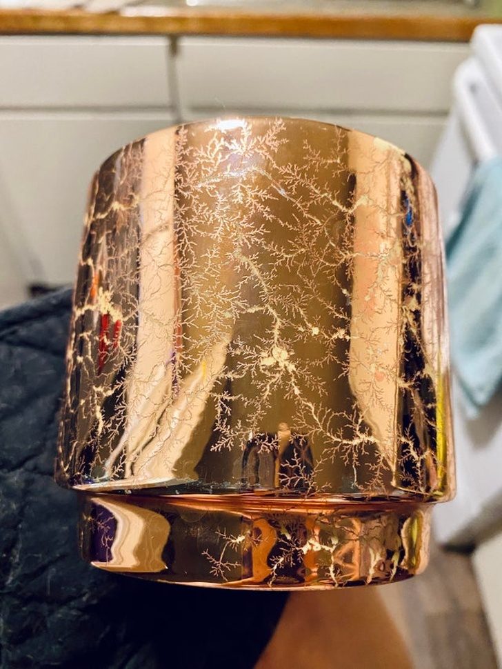 Чашка не предназначалась для микроволновки, но в ней оказалась и у нее появился вот такой уникальный узор