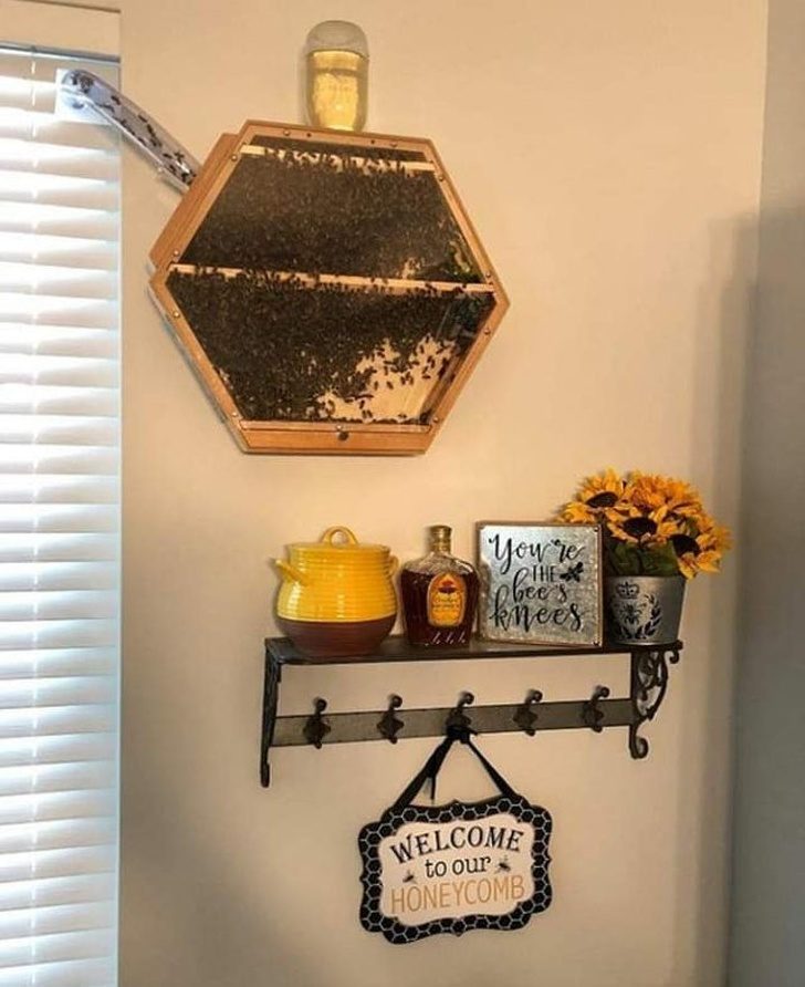 Полноценный пчелиный улей, обзорная версия, монтируется внутри дома. Как живая картина, только страшно подумать, что будет, если стекло разбить.