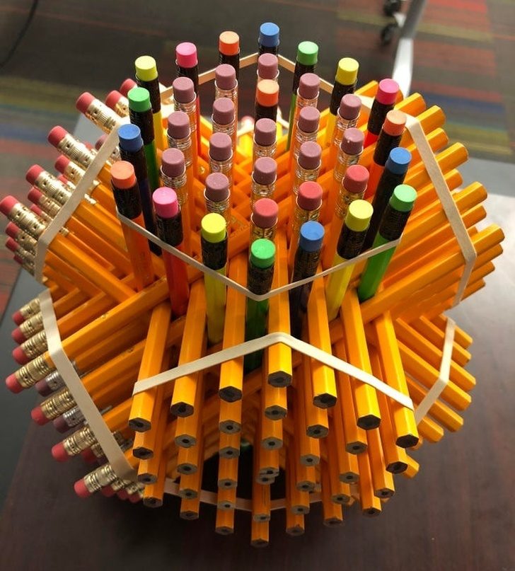 13. Творение из карандашей превратилось в потрясающий шестиугольник!
