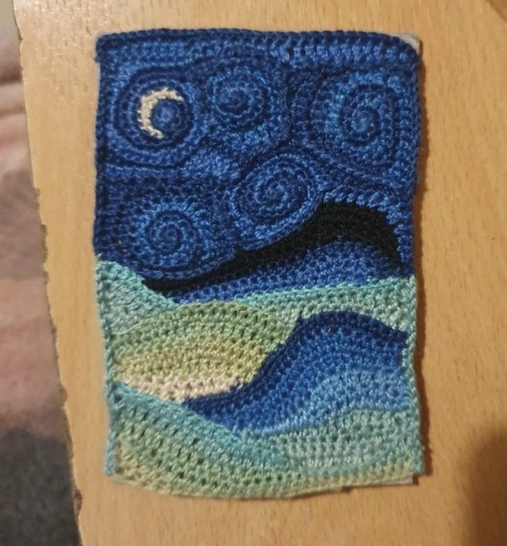 7. “Я нарисовал “Великую волну Хокусай” с Канагавы на крышках из переработанной винной фольги на деревянном блоке”.
